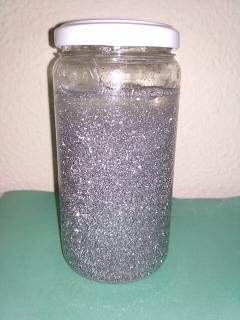 - Pegamento líquido con purpurina o pegamento líquido por un lado y purpurina suelta por otro.
