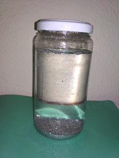 - Verter el agua tibia en el bote sin llenar hasta arriba para poder mover el líquido en el interior.
